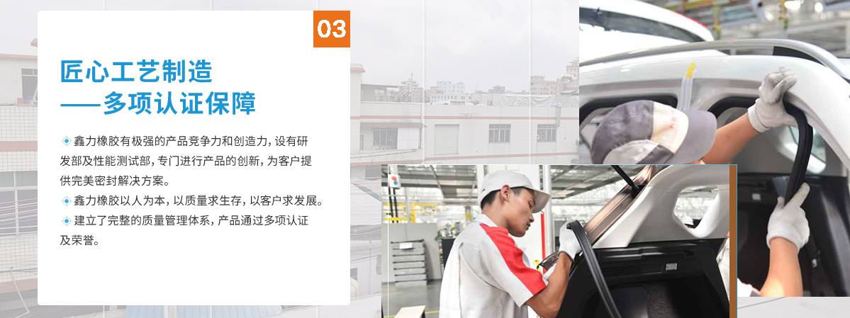 廣州鑫力橡膠制品有限公司(原白云三力橡膠廠)是原屬國營白云經(jīng)貿(mào)社的下屬單位,歷經(jīng)多次體制及股份改革,產(chǎn)品轉(zhuǎn)型升級成為集設(shè)計,研發(fā),生產(chǎn)為一體的生產(chǎn)廠家,我們的產(chǎn)品應(yīng)用范圍十分廣泛,適用于:汽車領(lǐng)域,軌道交通領(lǐng)域,建筑門窗領(lǐng)域,家具門業(yè)領(lǐng)域,航運領(lǐng)域,新能源領(lǐng)域,電器,機柜,機械等行業(yè)密封系統(tǒng)產(chǎn)品開發(fā)及生產(chǎn)。